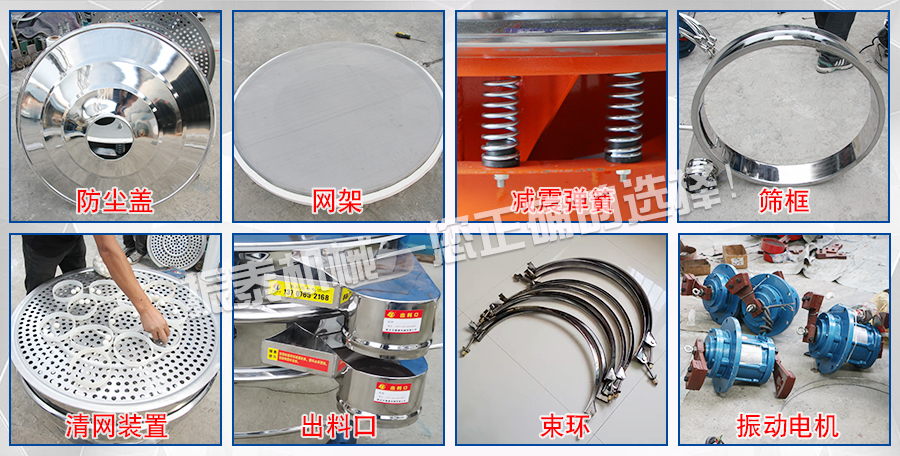 2、筛网:可根据筛分要求选配合适的目数,有碳钢、不锈钢、尼龙筛网三种材质。