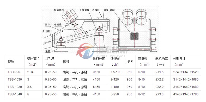 活性炭脱水振动筛技术参数: